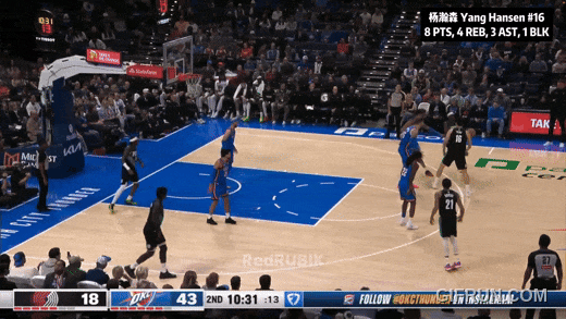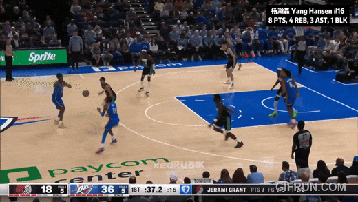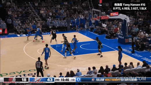 最后反正落后近40分了,開拓者讓楊瀚森投壓哨:三不沾。
