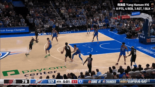開局不利:第一節(jié)末尾,弱側補位,慢了一拍:防守溝通,移動,也許想補亞歷山大?但終究是吃了個2+1。