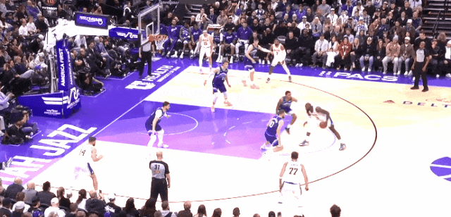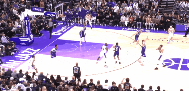 楊瀚森NBA生涯第一個三分。